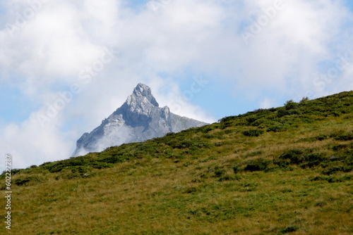 © AE & mekke, Naklejka premium mountain peak behind a mountain slope