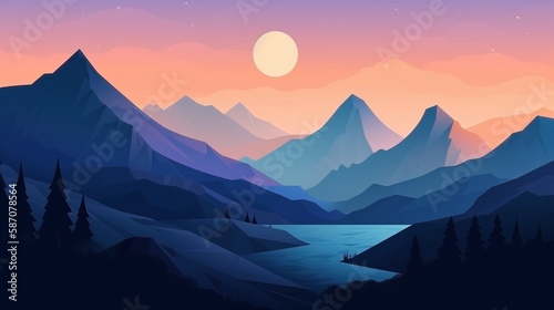 © Wandergus, Naklejka premium mountain peak landscape minimal flat illustration