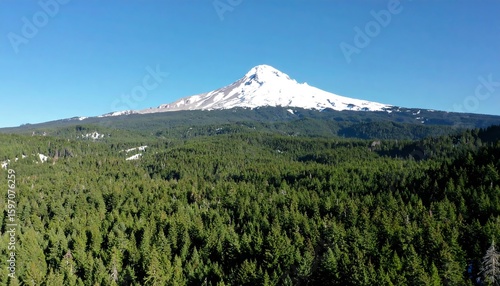 Fototapeta premium Mountain peak, lush forest, clear sky