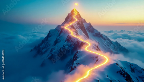 Naklejka premium Mountain peak success path goal achievement climbing snow landscape sky