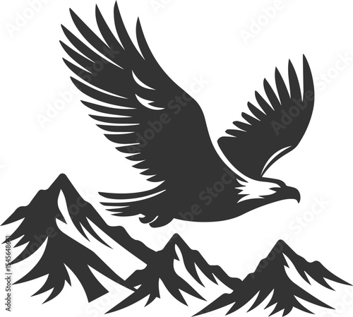 © MostAklima, Fototapeta premium Mountain peak with eagle bird vector drawing silhouette