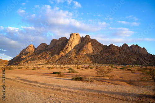 Fototapeta premium Mountain peaks in the evening during sunset, Spitzkoppe, Namibia