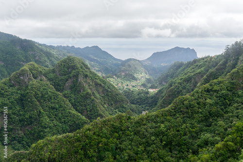 © Simon, Fototapeta premium Mountain rainforest Valley view from Balcoes Levada, Madeira Island