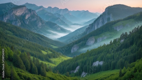 © -Quantum Pixels-, Fototapeta premium mountain range and evergreen forests, national park