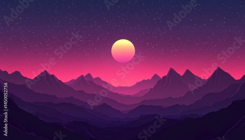 © Critink, Fototapeta premium Mountain range at twilight under a vibrant sunset