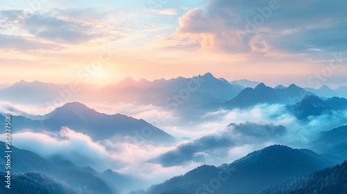 Fototapeta premium Mountain Range Bathed in Morning Mist and Sunlight