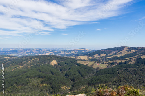 © RodrigoTakashi, Fototapeta premium Mountain range blue skyline