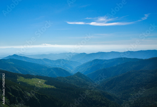 © okostia, Obraz premium Mountain range on background of blue sky in twilight
