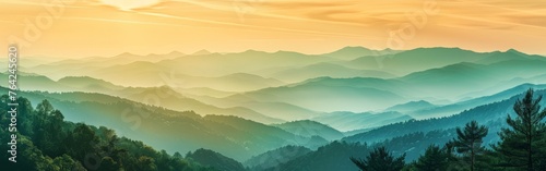 © BrandwayArt, Fototapeta premium Mountain Range Painting With Foreground Trees