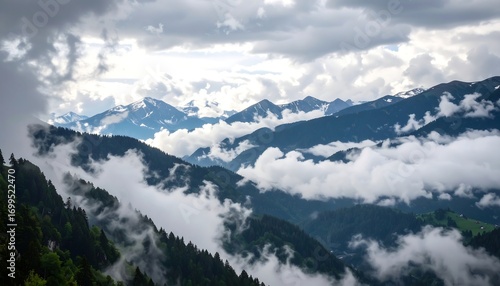 © ee, Fototapeta premium Mountain range shrouded in clouds