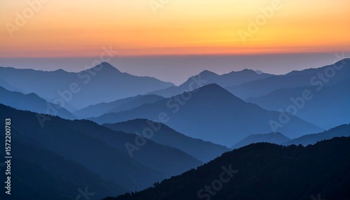 © Berkah, Obraz premium Mountain Range Silhouette at Sunset with Colorful Sky