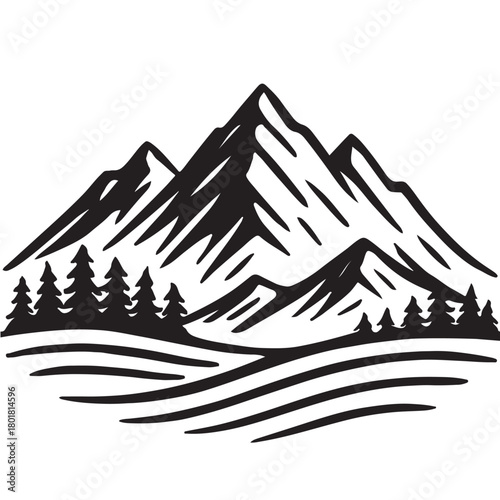 Fototapeta premium Mountain Range Silhouette With Trees and Hills Keywords: mountain, mountains,...