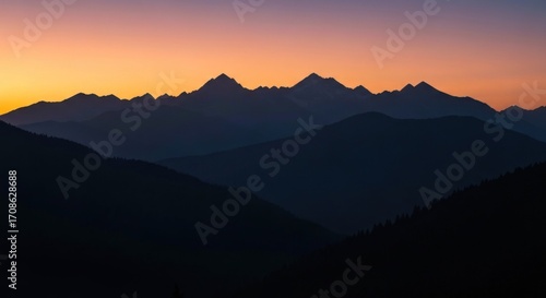Fototapeta premium Mountain range silhouetted against a vibrant sunrise