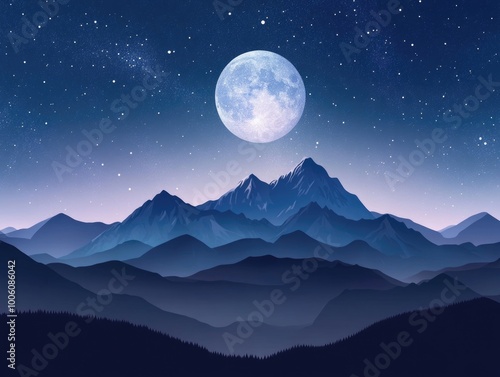 Fototapeta premium Mountain Range Under Full Moon