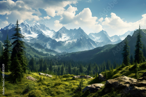 © Shades3d, Obraz premium Mountain range with a blue sky. Generative Ai