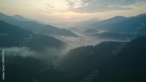 Fototapeta premium Mountain Range with Mist at Sunrise
