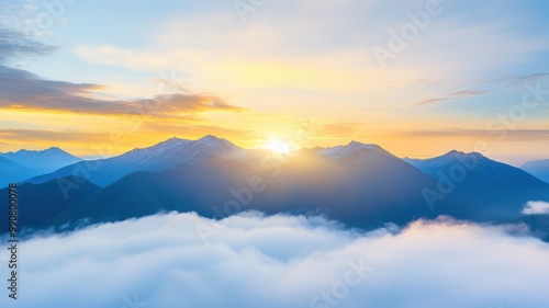 © Nisit, Fototapeta premium Mountain Ranges in Golden Light at Sunrise