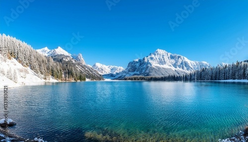 © Waqas, Obraz premium mountain reflection in the river