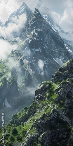 Naklejka premium Mountain, Remote and Untouched: Pristine, untouched mountain landscapes...