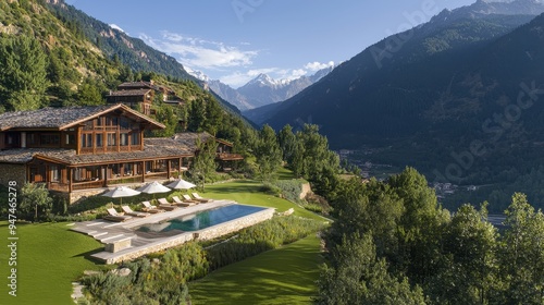 Fototapeta premium Mountain Resort with Swimming Pool and Stunning Views