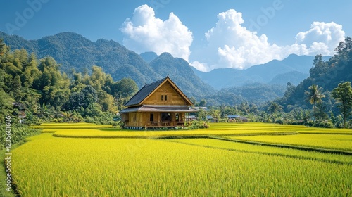 © RONNY, Fototapeta premium Mountain Rice Paddy Home