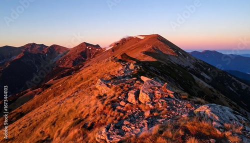 © alex, Fototapeta premium Mountain Ridge and a Sunrise with a Red and Powerful Look