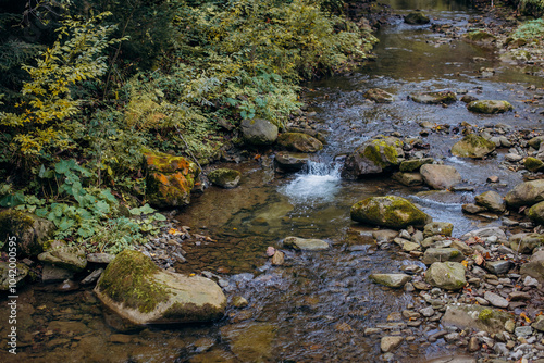 Fototapeta premium Mountain river in the autumn forest.