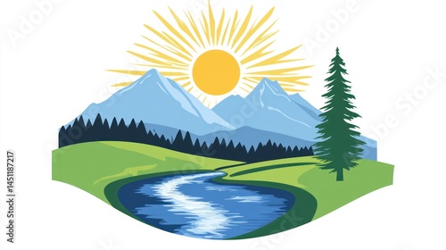 Obraz premium Mountain River Landscape Illustration (2)