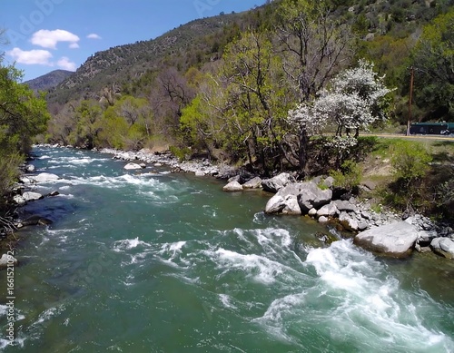 © Dafi, Obraz premium Mountain River Rapids Aerial View Spring