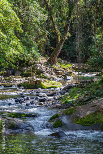 Obraz premium Mountain river surrounded by lush rainforest