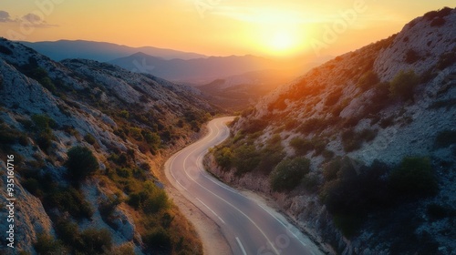 Fototapeta premium mountain road at sunset. Top view.