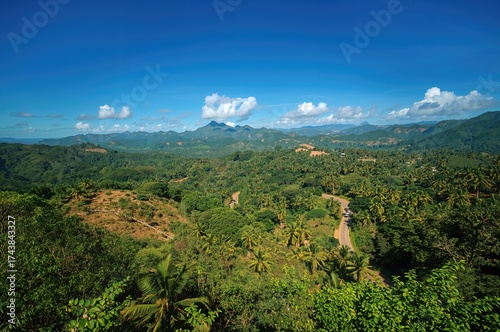 © AkuAku, Fototapeta premium Mountain road connecting two coastal towns in the Caribbean