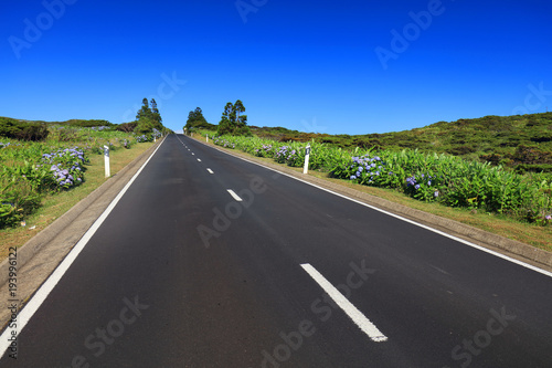 Naklejka premium Mountain road on Flores Island, Azores, Portugal, Europe