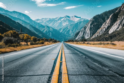 © Horsi, Fototapeta premium Mountain Road With Yellow Lines Leading to the Horizon