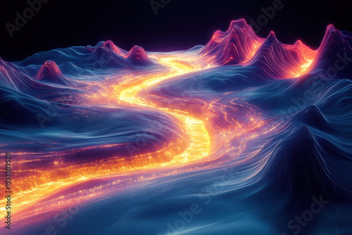 © Birzhan, Fototapeta premium Mountain scene displayed on computer screen.