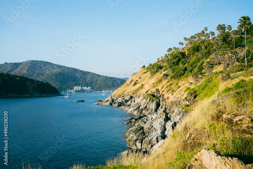 © loveyousomuch, Obraz premium Mountain seaside during sunset.
