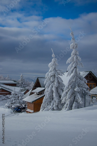 © Magdalena, Naklejka premium mountain shelter at the frosty and snowy winter