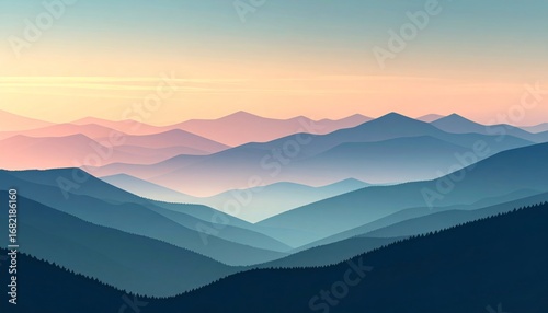 Obraz premium Mountain silhouette at dawn layered horizon in pastel gradien