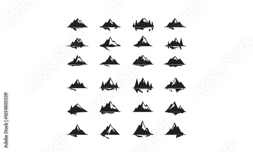 © MdAlamin, Naklejka premium Mountain silhouette collection reflected in water, nature logo concepts