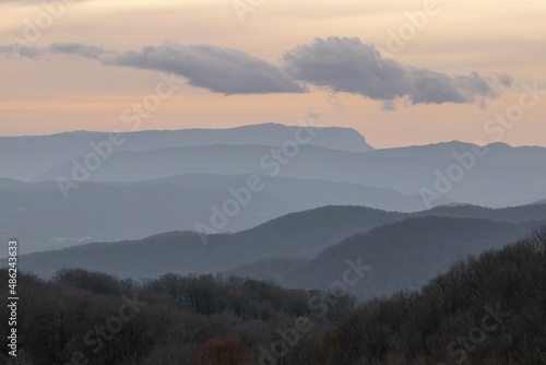 © Néstor MN, Fototapeta premium Mountain silhouettes at sunset