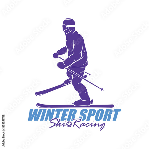 © ESP Studio, Fototapeta premium Mountain Skiing Logo Design Vector. Silhouette Ski Player Template Illustration