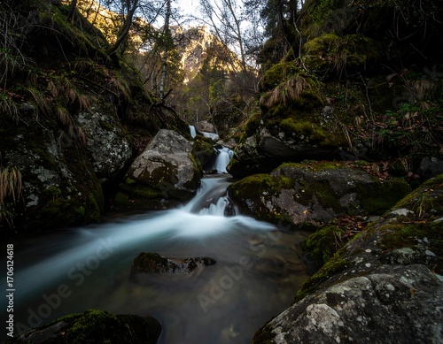 © volilah, Obraz premium Mountain stream cascading over rocks