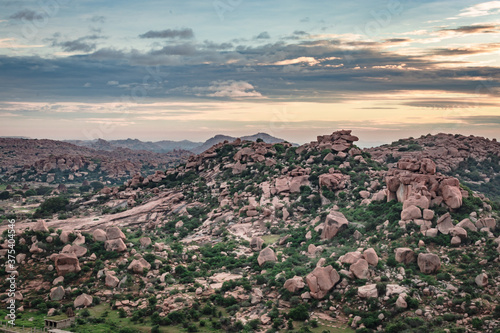 © explorewithinfo, Fototapeta premium mountain sunrise with dramatic sky at morning flat angle shot
