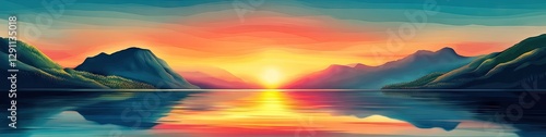 © photopixelstudio, Fototapeta premium Mountain Sunset Over Lake