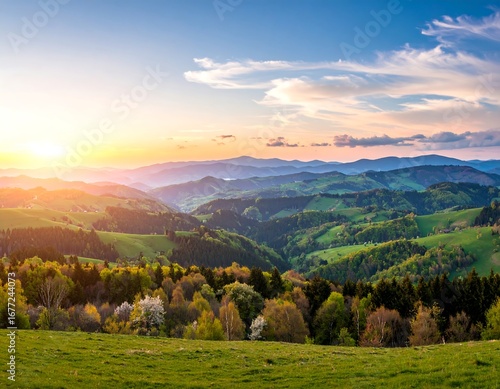 © Ginimo, Obraz premium Mountain Sunset Panorama View