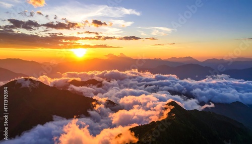 © Hhtps, Fototapeta premium Mountain sunset view, clouds