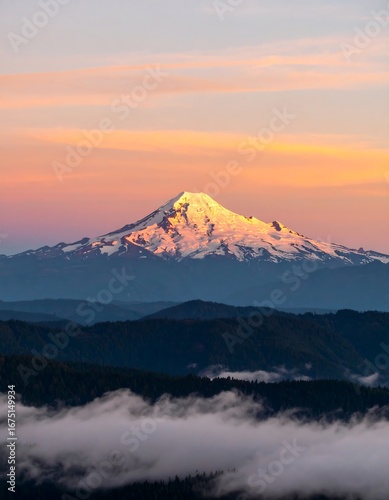 © Tati, Fototapeta premium Mountain Sunset View from Distant Ridge