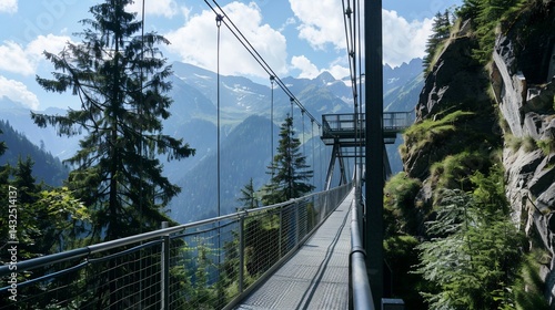 © Galih, Obraz premium Mountain Suspension Bridge Walkway Alps Hiking View