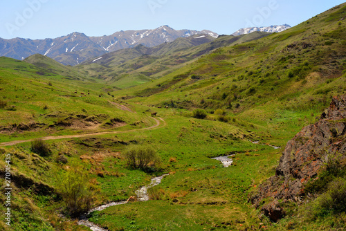 © Colobus, Naklejka premium Mountain terrain meadows in Altyn-Emel