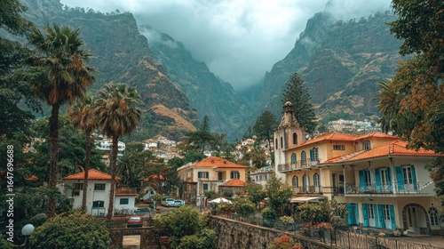 © ROY, Fototapeta premium Mountain town nestled in a valley